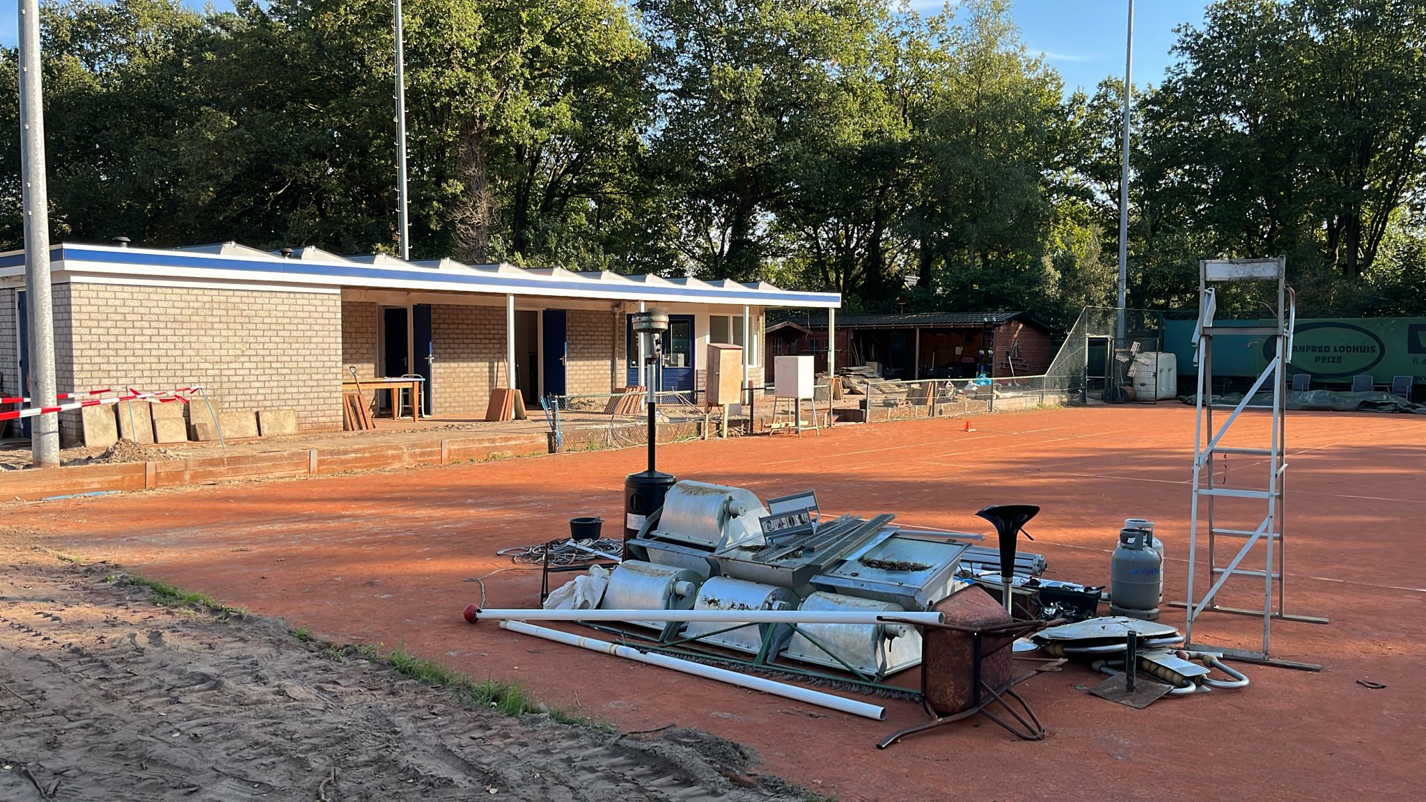 Dat is echter nog niet alles: de verlichting van de banen moest worden omgezet, alsmede het water en verwarming in het clubhuis afgesloten. Het terras en de toegangsweg is gedeeltelijk opgebroken en de voorraad kan worden opgemaakt.