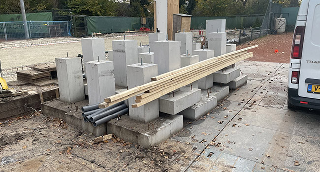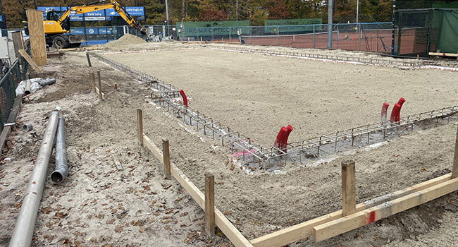 Op baan 4 staan ook al de eerste 'poeren' klaar: in feite grote betonblokken, waarop straks het skelet van het gebouw kan worden geplaatst. Voorlopig hebben we er in elk geval nog best aardig weer, zeker voor november, dus er kan stevig doorgewerkt worden!