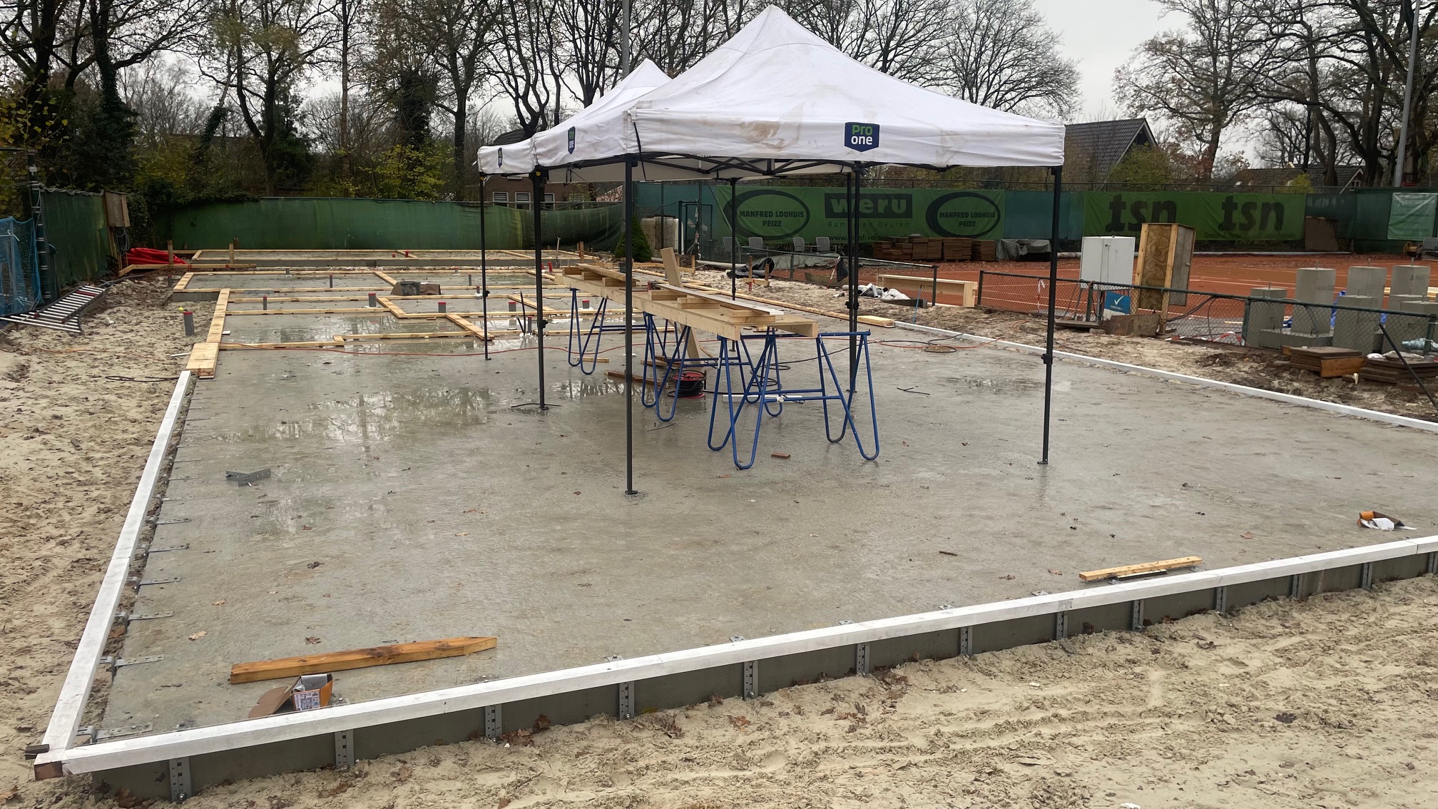 Het meeste werk ind e afgelopen weken zat in de voorbereidingen voor de fundering en het gieten van de betonvloer. Dat heeft uiteraard ook tijd nodig om te drogen, voordat begonnen kan worden, met de eerste bouwwerkzaamheden.
